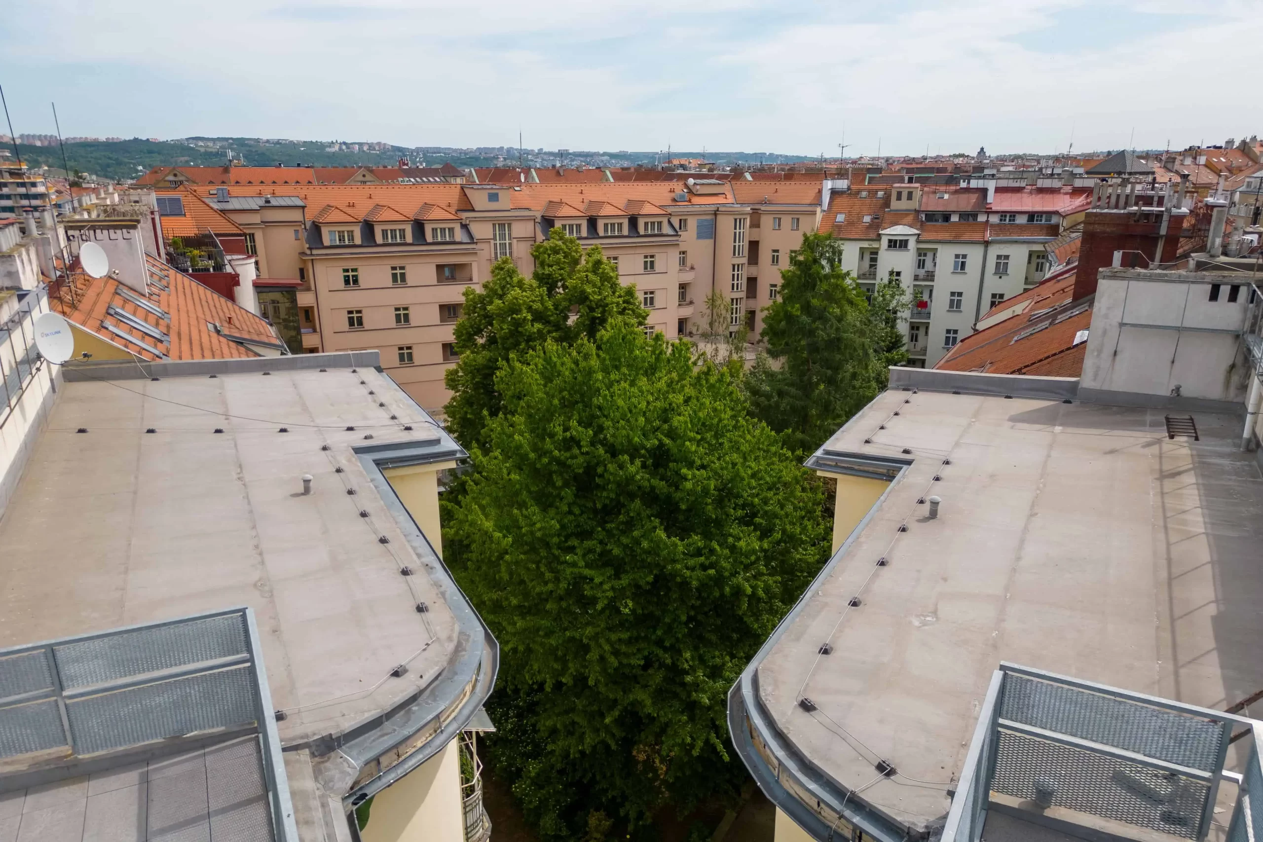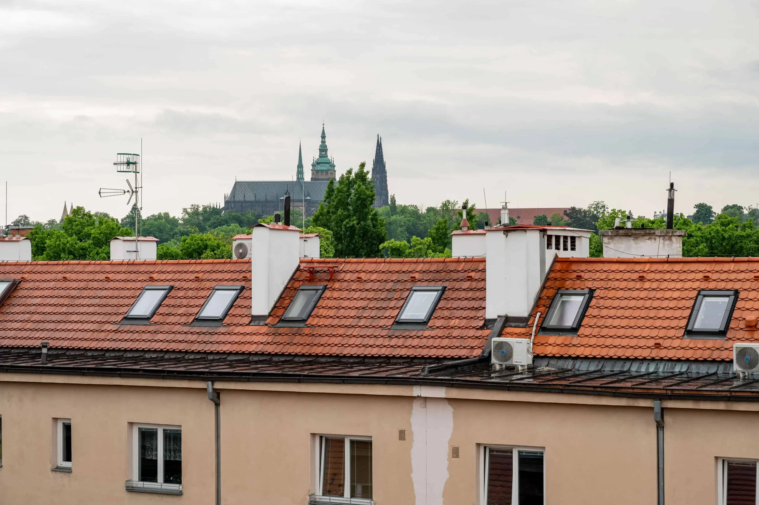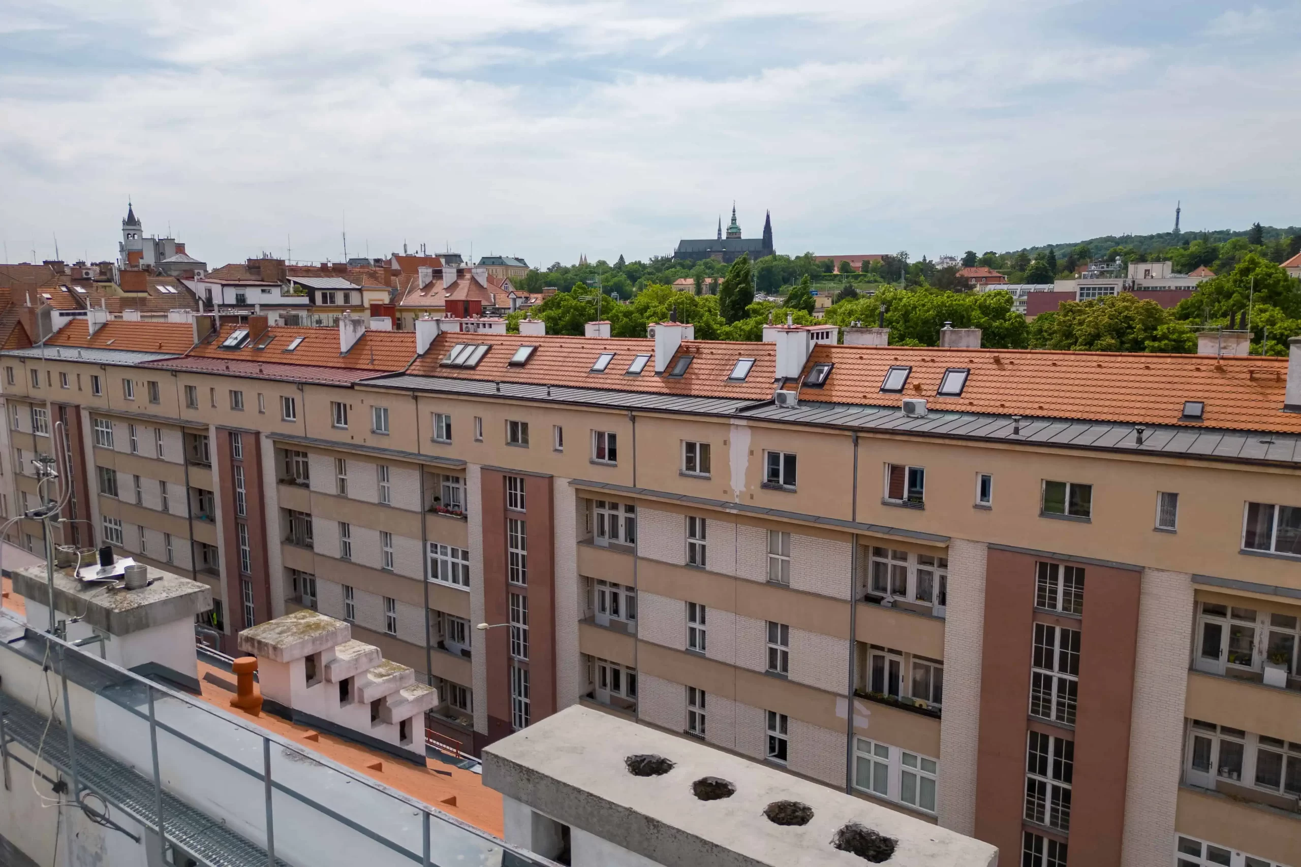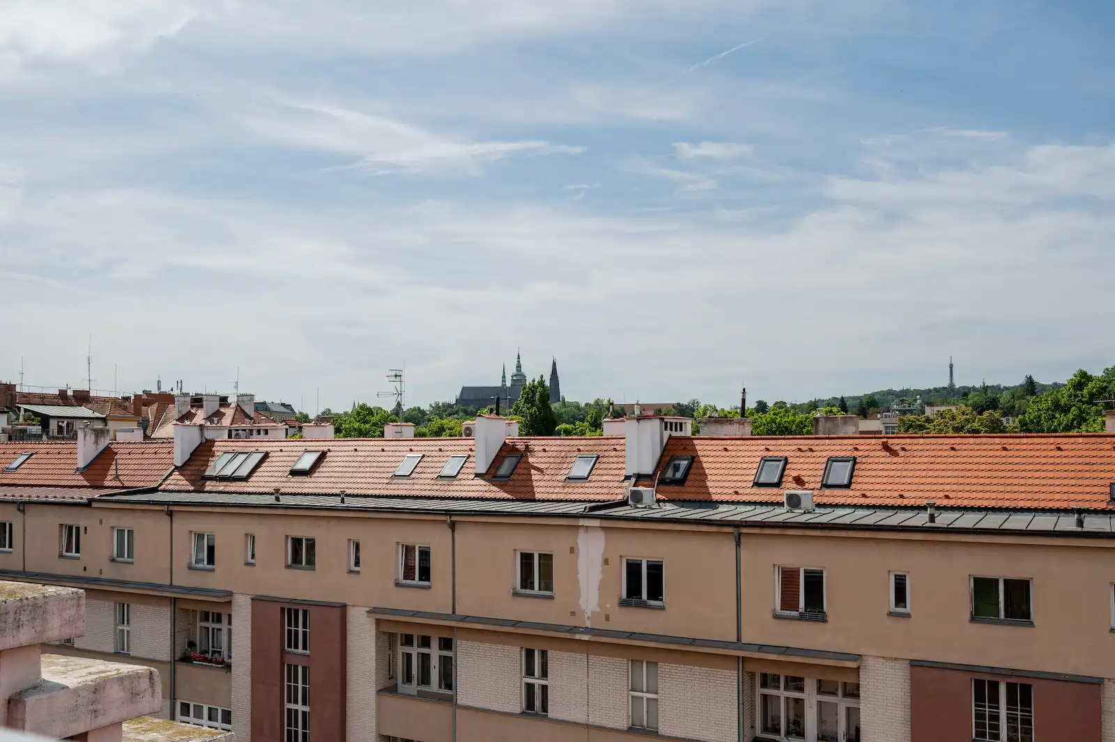 Z bytové terasy se vám naskytne krásný výhled přímo na Pražský hrad. Navíc, pokud se rozhodnete vydat na procházku, stačí vám pouhých 15 minut, abyste se dostali přímo k Pražskému hradu.