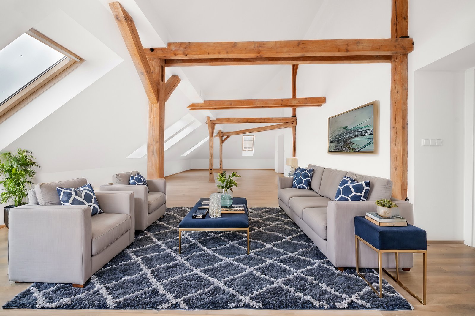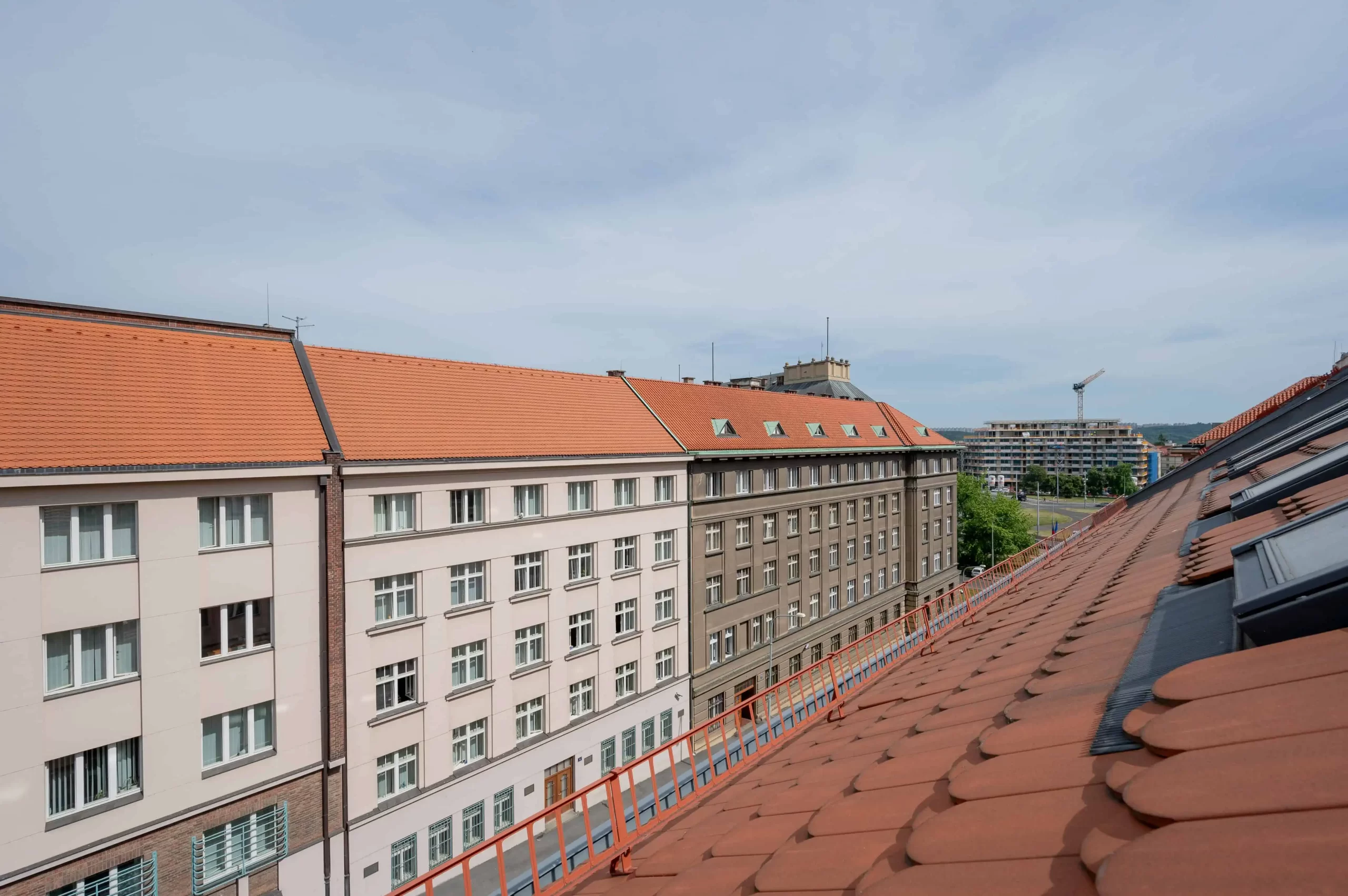 Po točitých schodech, které vás provedou přesně z kuchyně na terasu, se otevře před vámi panorama do tichého vnitrobloku a neuvěřitelný výhled na slavný Pražský hrad. Pocit volnosti a nadhledu se promítnou do vašeho každodenního života, když budete vnímat pulzující atmosféru města a zároveň si užívat klidného útočiště na vlastní terase.